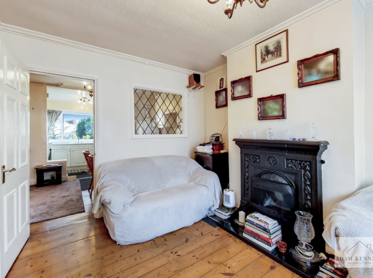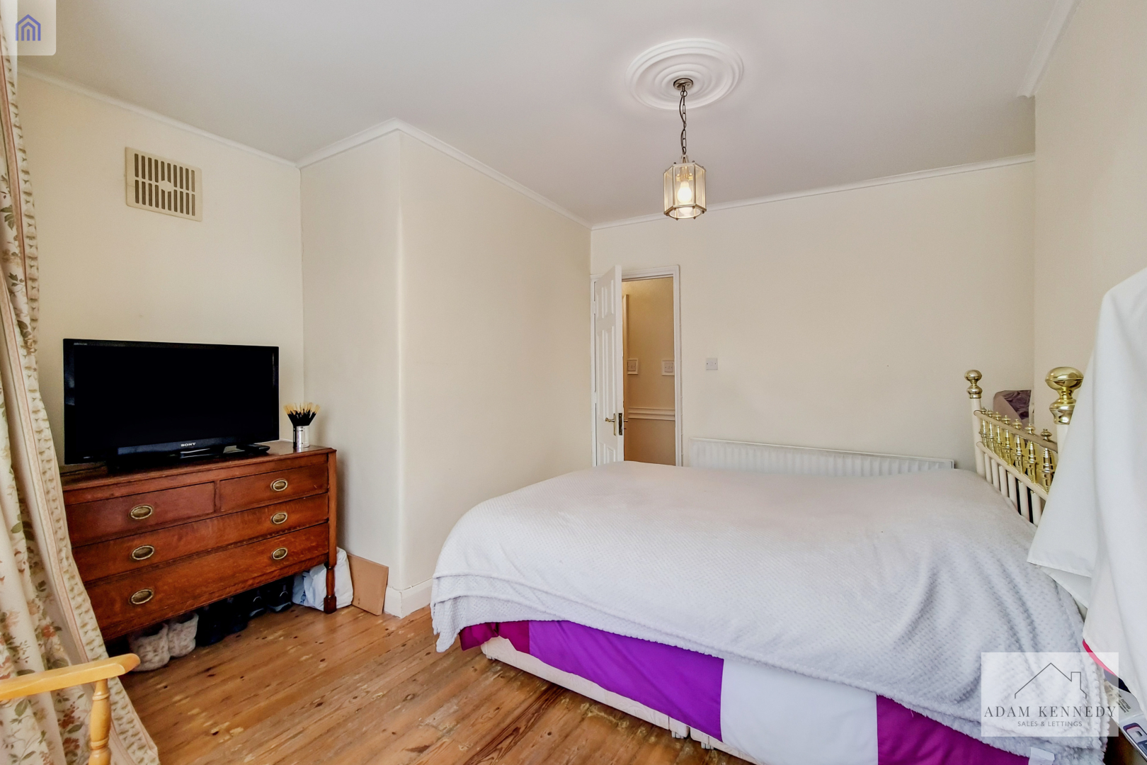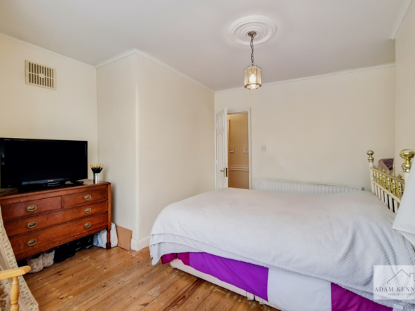 UPVC double glazed bay window to front, one radiator, wooden varnished floor boards and power points.