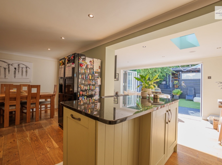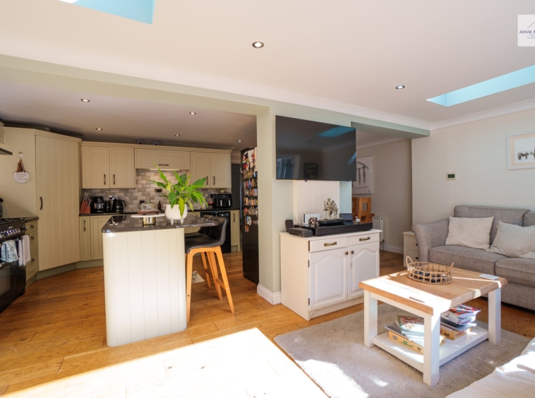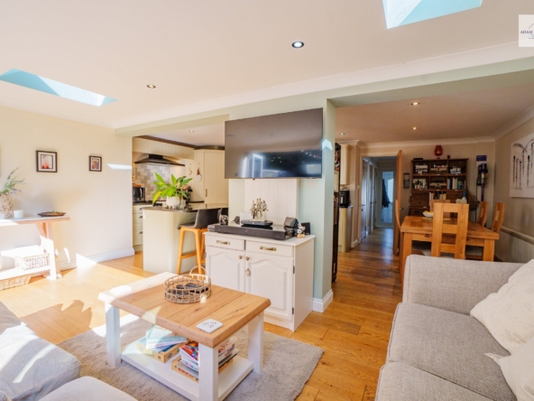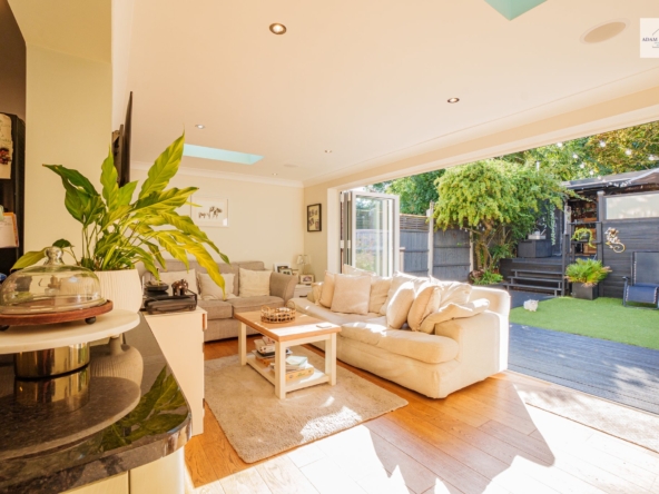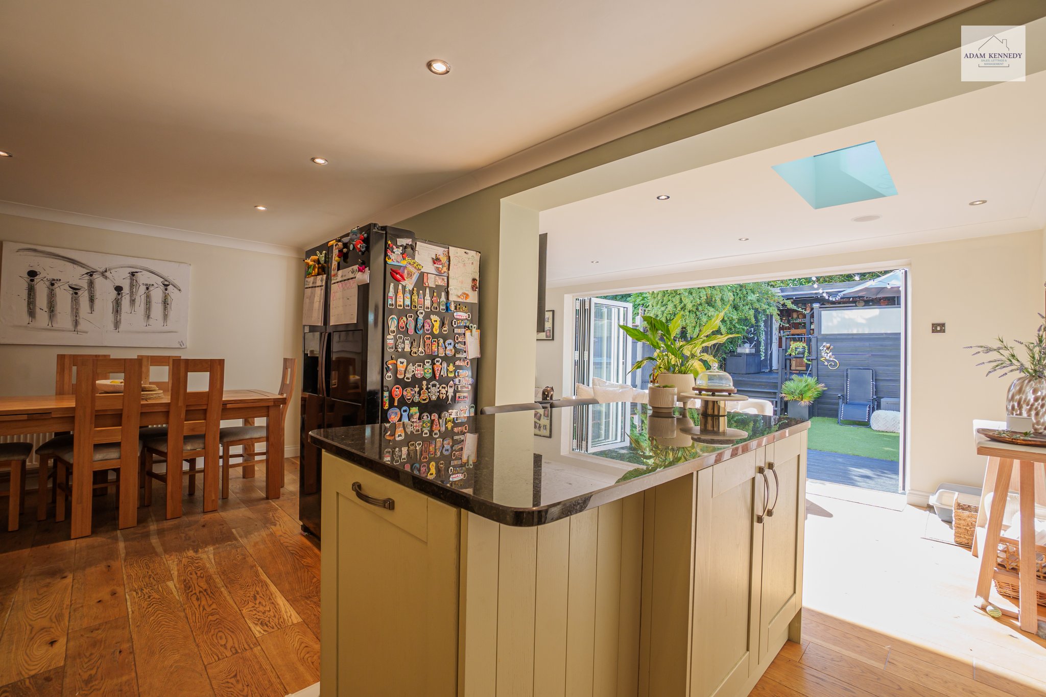 Bi-Fold window to side aspect leading to garden, two skylights above, laminate flooring, power points.