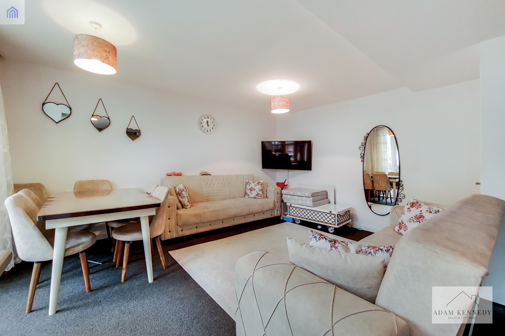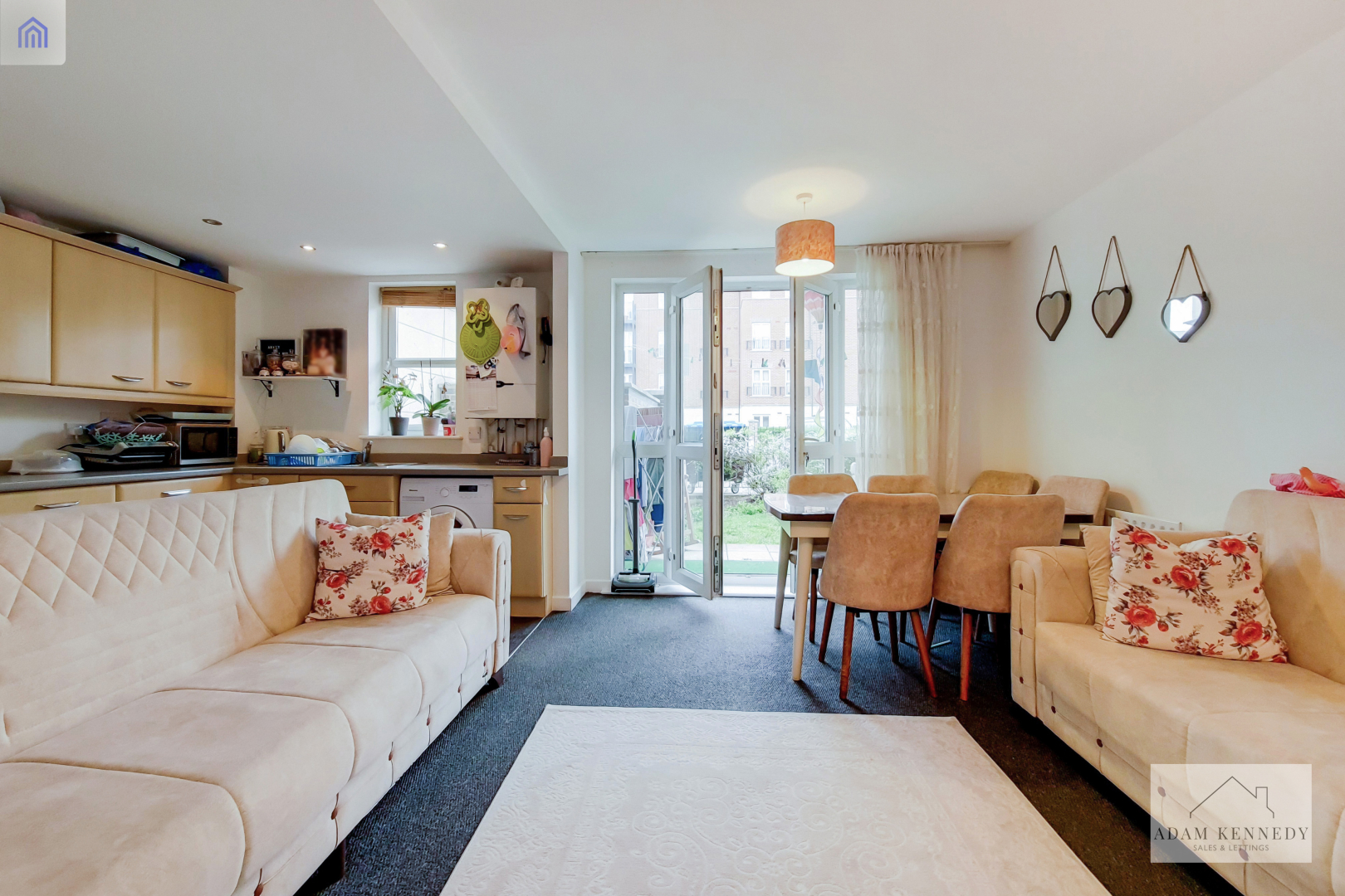Spacious reception comprising of two radiators, carpet flooring, TV point, power points, door to the hallway and UPVC double glazed door to the garden.