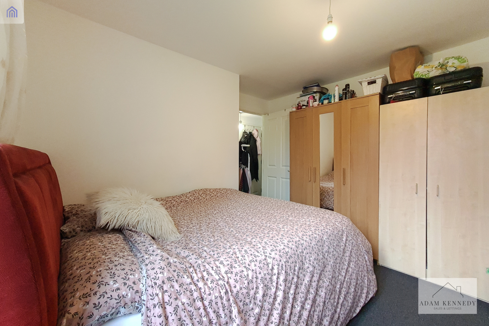 Hardwood front door, carpet flooring, storage cupboard, one radiator and doors to the reception, bedroom and bathroom.