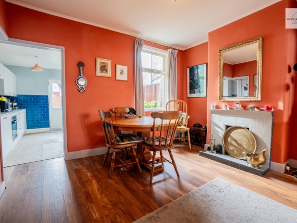 Upon entering the property, you are greeted with the hallway leading into the spacious through lounge. The through lounge is bright and inviting complete with laminate flooring throughout, and a large UPVC double glazed bay window, allowing natural light to enter the property. There is also a feature fireplace, creating a warm and cosy feel. High ceilings and generous floor space allow for both a comfortable lounge area and additional dining, ideal for relaxing, hosting or simply unwinding.