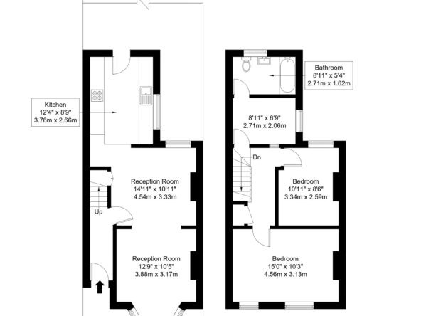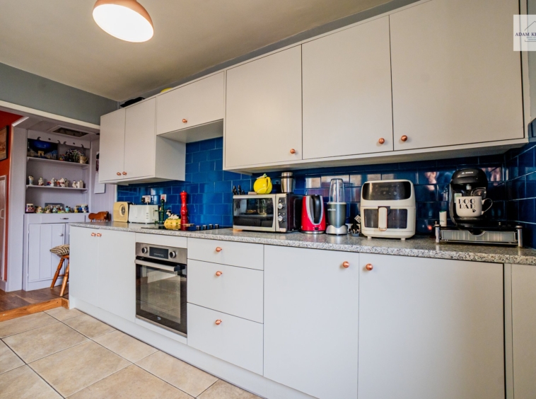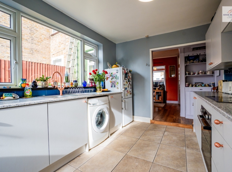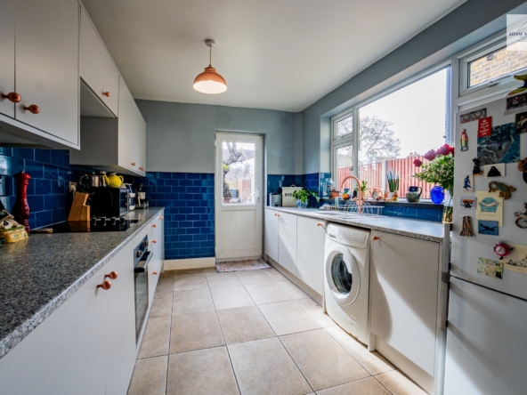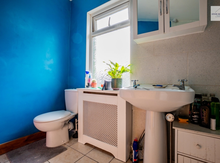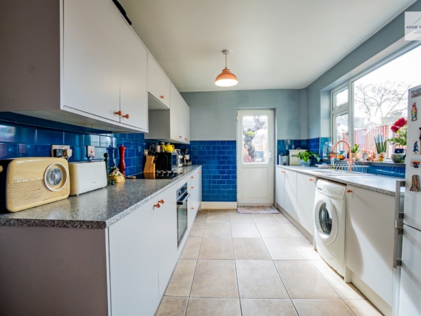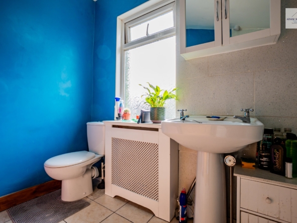 To the rear, the spacious kitchen is both practical and full of potential. Fitted with a range of wall and base units, generous worktop space and tiled splashbacks. It offers plenty room for cooking and storage. Natural light filters in from the rear aspect through a large UPVC double glazed window. There is direct access into the spacious rear garden making it perfect for outside cooking and hosting.