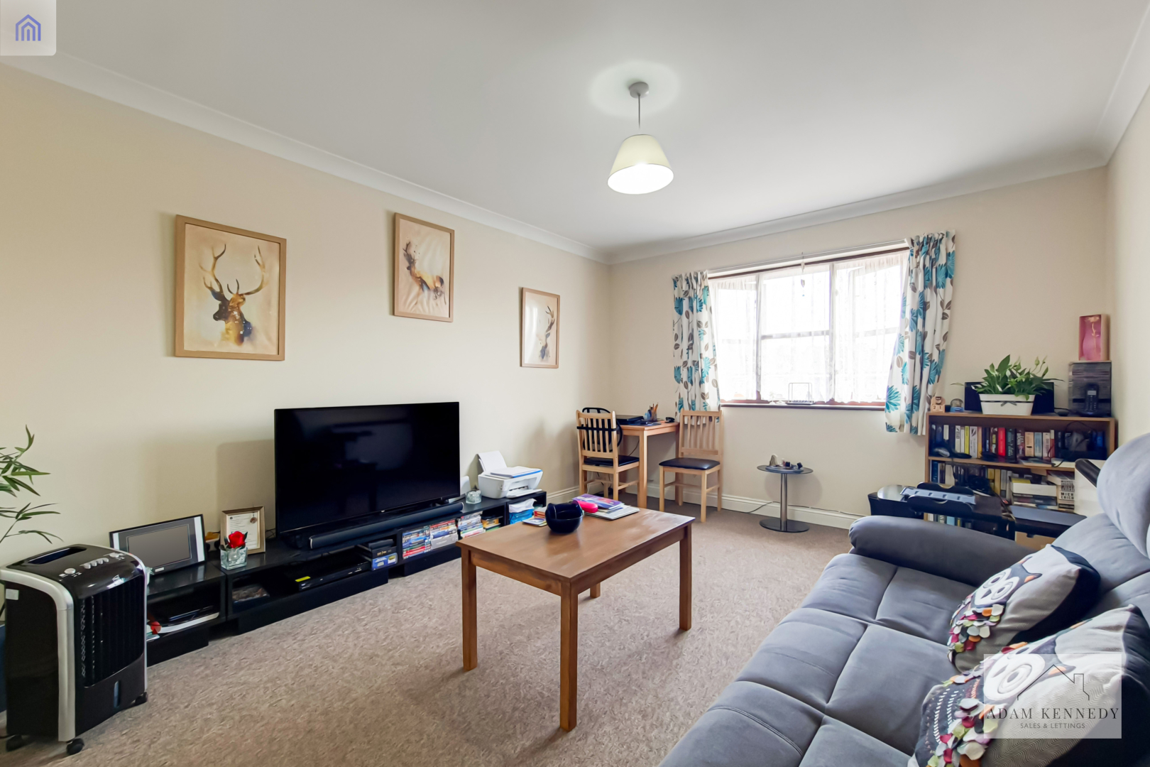 Wooden frame single glazed window to front, storage heater, carpet flooring, power points, door to the reception and opening to the kitchen.