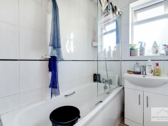 Two piece suite comprising of vanity wash hand basin, panel bath plus shower attachments and mixer taps. Extractor fan, fully tiled walls, tiled flooring and frosted UPVC double glazed window to rear.