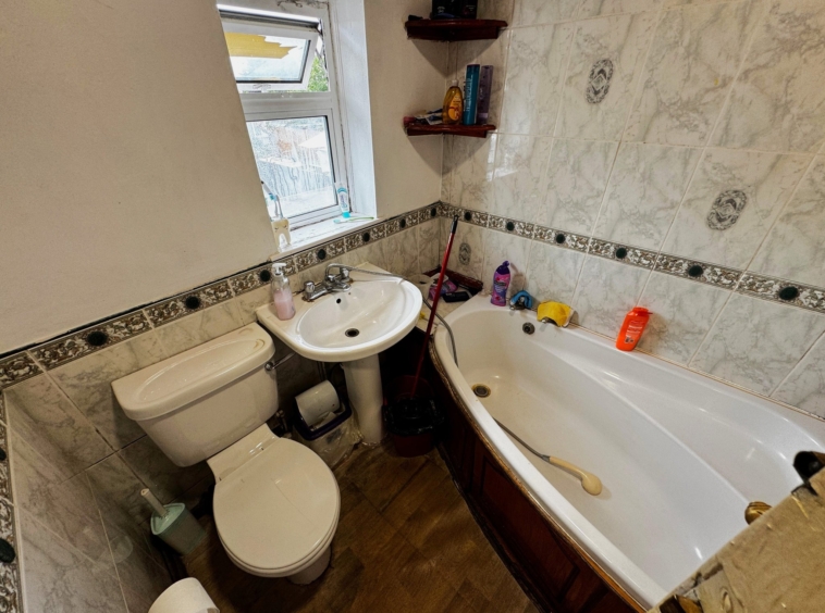 Upon entering the upstairs of the property, the first floor comprises of three well proportioned bedrooms, including two double bedrooms and a single bedroom. The property also features an upstairs three piece bathroom suite, comprising of a bathtub, wash hand basin and a W.C.