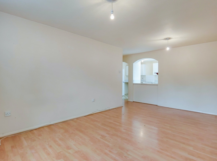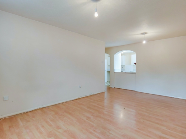 UPVC Double glazing, window to front, storage heaters, laminate flooring, power points and opening to the kitchen and door to the hallway.