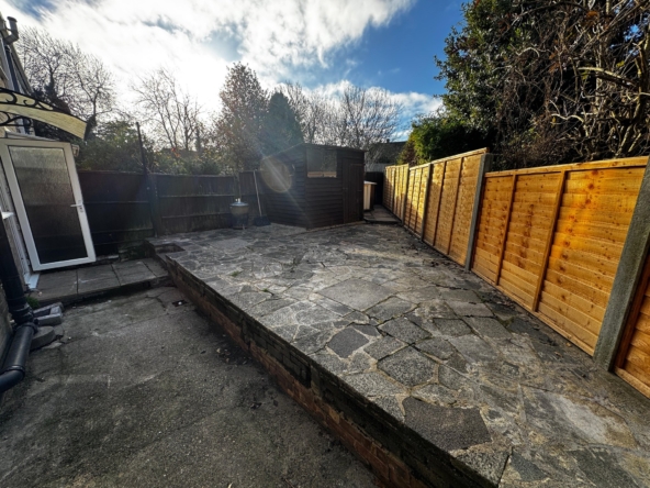 The maisonette opens into a large reception room finished with carpet throughout, complemented with a large UPVC Double Glazed window that fills the reception room with lots of natural light. A separate fitted new kitchen sits to the rear, comprising of wall and base units, tiled backsplash, space for appliances, laminate flooring, and a UPVC Double glazed window to the rear alongside a frosted UPVC Double Glazed door leading into the private rear garden. The rear garden is laid with patio throughout, which is ideal for low maintenance outdoor living and is complete with an outdoor storage shed.